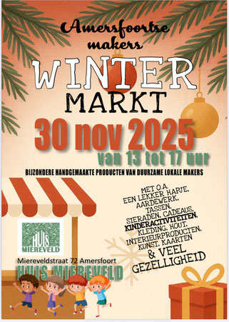 Op zondag 30 november organiseren we een makersmarkt en ontmoetingen tussen wijkgenoten d.m.v. leuke activiteiten! De hal van Huis Miereveld wordt omgetoverd tot marktplein, In de