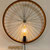 een diameter van 58 cm. De lamp heeft een eiken houten standaard met 2 eiken houten steunen.