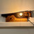 De lamp is op de wand bevestigd met 2 eiken houten steunen.